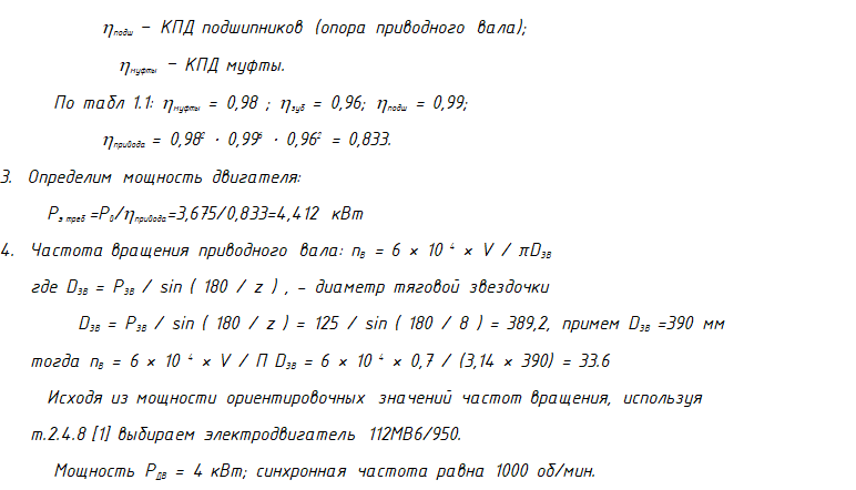 Приступая к выполнению проекта, в первую очередь выбирают электродвигатель, для этого определяют его мощность и частоту вращения.После вычисления мощности определяют потребную мощность электродвигателя. Далее определяют частоту вращения вала электродвигателя.