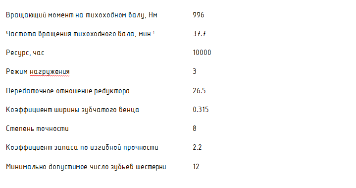Для расчета цилиндрического, двухступенчатого редуктора выполненного по развернутой схеме на ЭВМ подготовим следующие исходные данные: