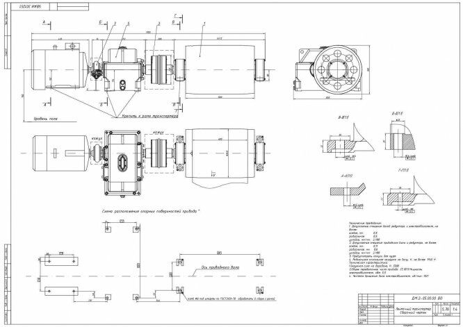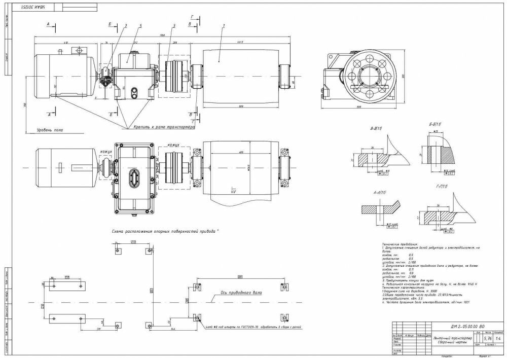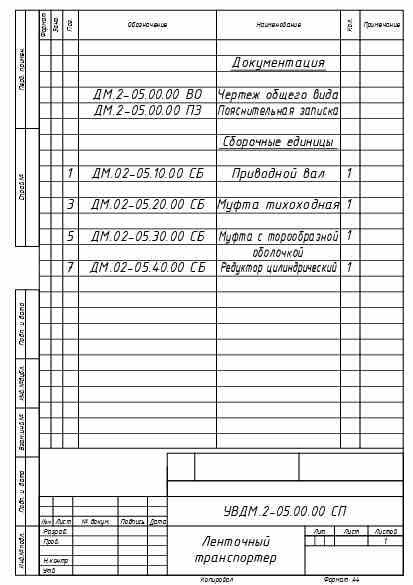 Лист 1 - Ленточный конвеер - Сборочный чертеж и спецификация