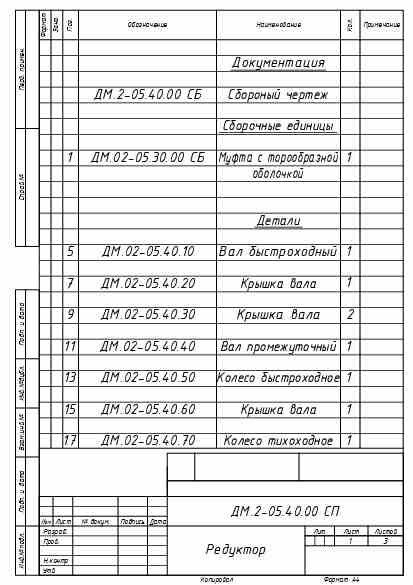 Лист 4-5 - Редуктор - Сборочный чертеж и спецификация