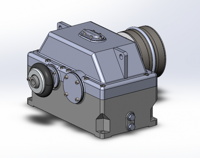 В приложении приведены данные проектного расчета и полученные результаты на ЭВМ по которым, исходя из оптимального соотношения массы редуктора, межосевого расстояния, способа термообработки и диаметра вершин зубчатых колёс быстроходной и тихоходной ступени был выбран следующий вариант: 3D-модель редуктора