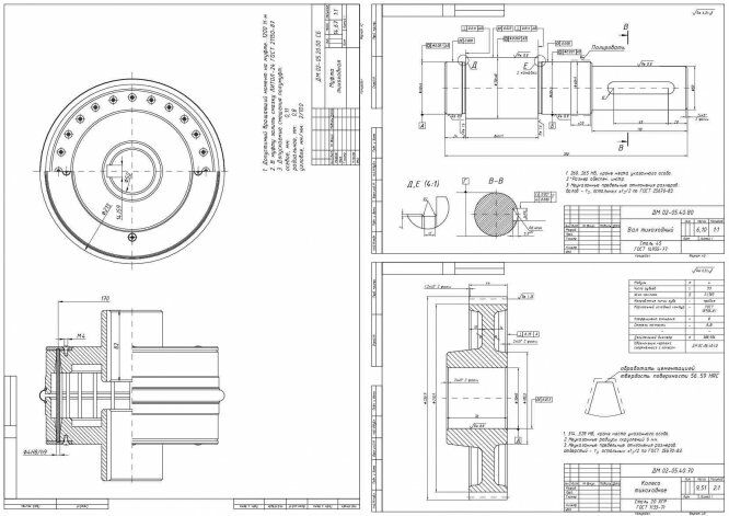 Лист 3 - Деталировка - Муфта тихоходная; Вал тихоходный; Колесо тихоходное