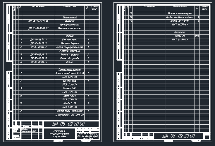 Лист 3 - Деталировка (Колесо зубчатое; Вал тихоходный; Звездочка с предохранительным устройством + Спецификация) ![]()