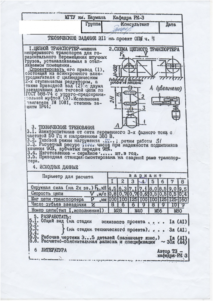 Курсовая работа ДМ: Привод цепного транспортера вариант 311
