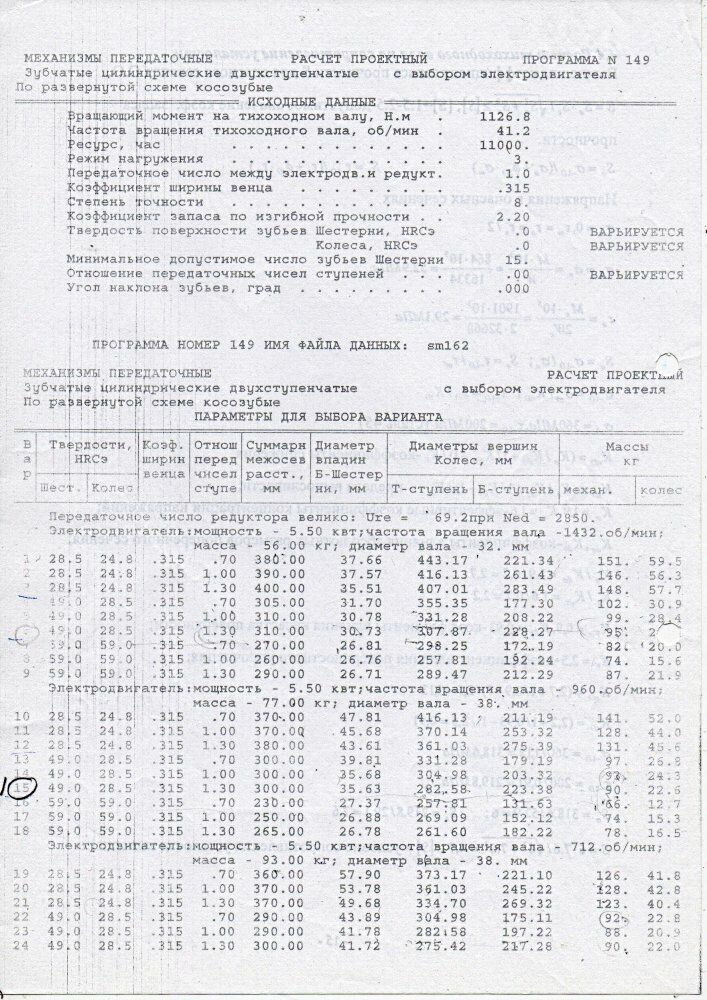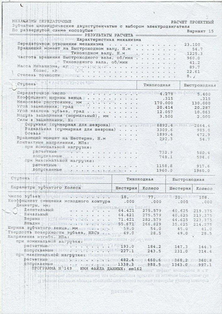 В приложении 1 приведены данные проектного расчета и полученные результаты на ЭВМ по которым, исходя из оптимального соотношения массы редуктора, межосевого расстояния, способа термообработки, стоимости и соотношения передаточных чисел ступеней был выбран следующий вариант: вариант №15. (Приложение I)