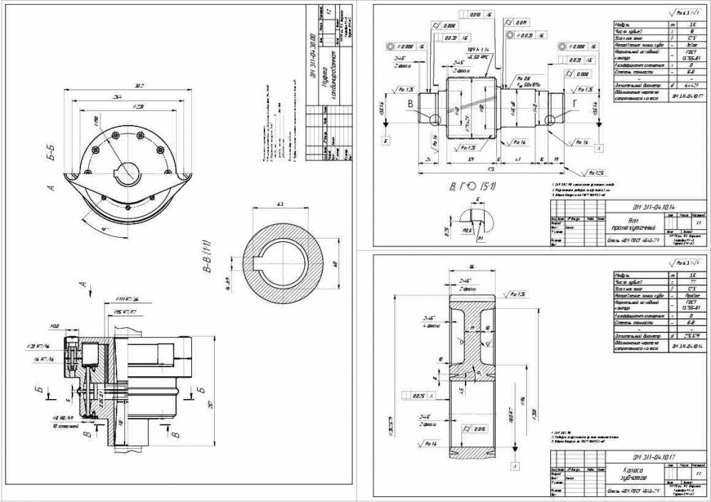 Лист 3 - Деталировка - Муфта комбинированная; Вал промежуточный; Колесо зубчатое ![]()