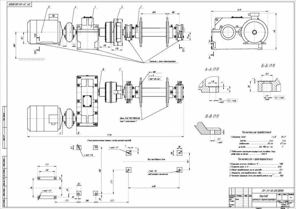 Для студентов МГТУ им. Н.Э.Баумана по предмету Детали машин (ДМ)Привод цепного транспортераПривод цепного транспортера
