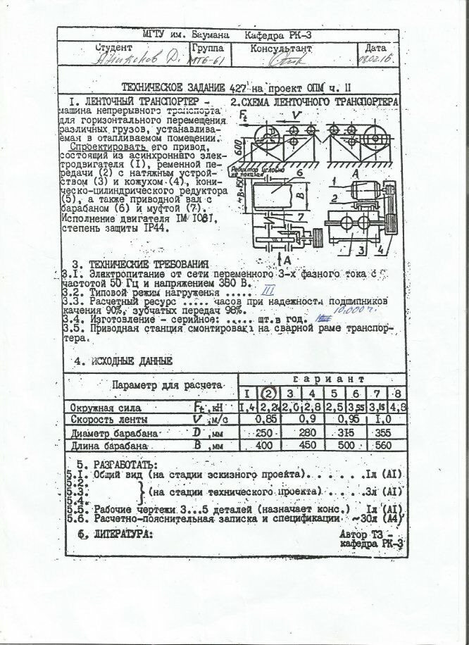 Для студентов МГТУ им. Н.Э.Баумана по предмету Детали машин (ДМ)Привод ленточного транспортёраПривод ленточного транспортёра