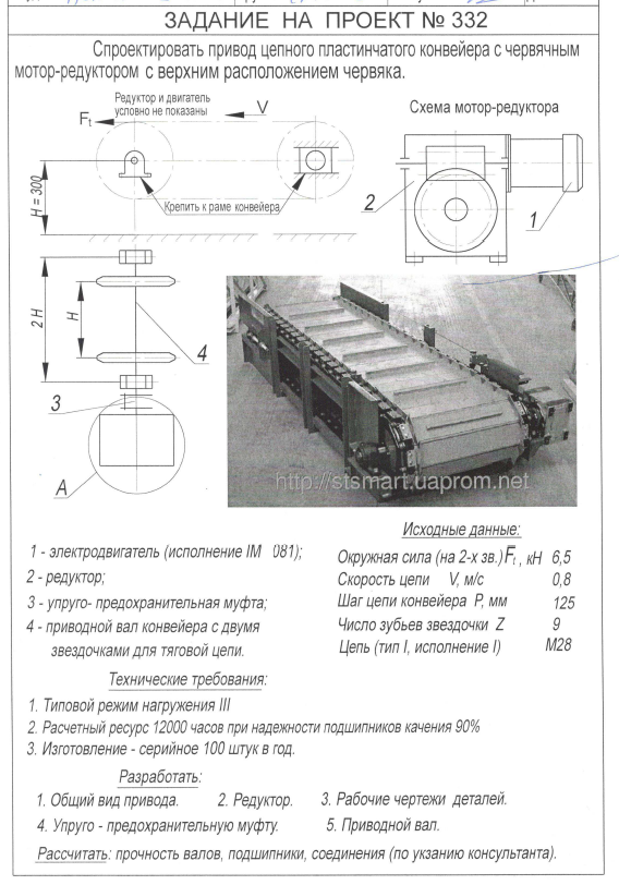 Главная » Учебные материалы » Детали машин (ДМ) » Курсовые работы » МГТУ им. Н.Э.Баумана » 6 семестр » Номер ДМ » Вариант 332 » Привод цепного конвеера с червячным мотор-редуктором с верхним расположением червяка