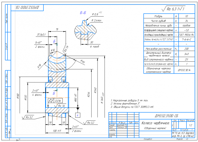 Лист 3 - Деталировка (Муфта комбинированная; Колесо зубчатое; Червяк)