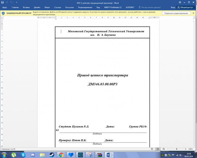 Для студентов МГТУ им. Н.Э.Баумана по предмету Детали машин (ДМ)ДМ 346.03 Привод цепного транспортераДМ 346.03 Привод цепного транспортера