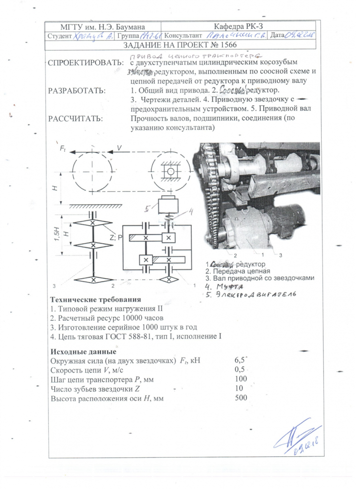 Для студентов МГТУ им. Н.Э.Баумана по предмету Детали машин (ДМ)Привод цепного транспортераПривод цепного транспортера
