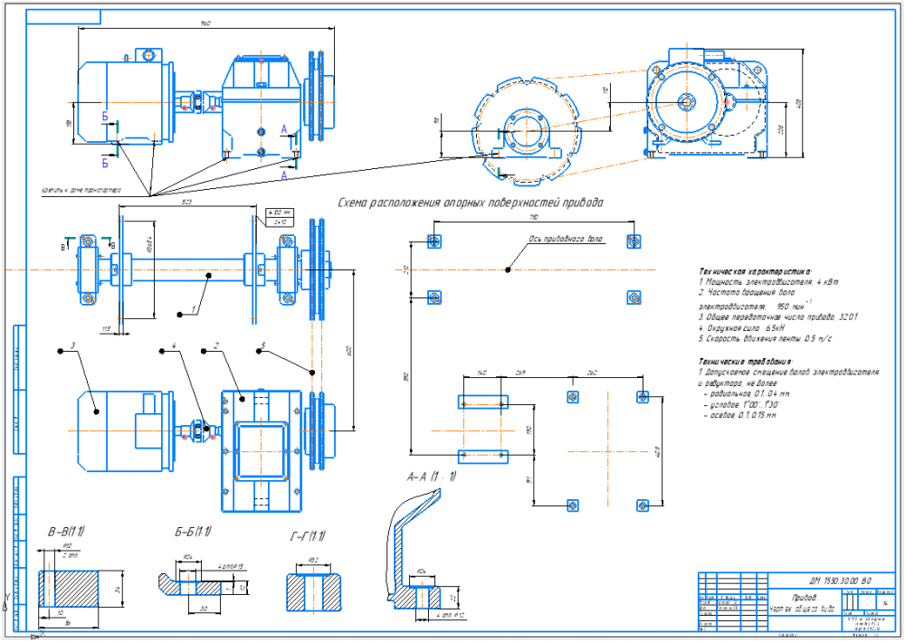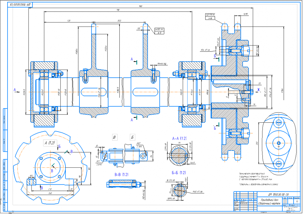 В данной работе необходимо разработать общий вид привода, соосный редуктор, звездочку цепной передачи с предохранительным элементом, приводной вал, а также выполнить чертежи некоторых деталей, подобрать упругую муфту.