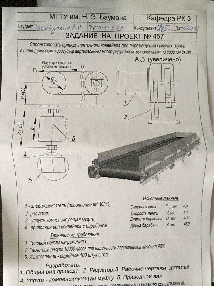 Для студентов МГТУ им. Н.Э.Баумана по предмету Детали машин (ДМ)Привод ленточного транспортераПривод ленточного транспортера