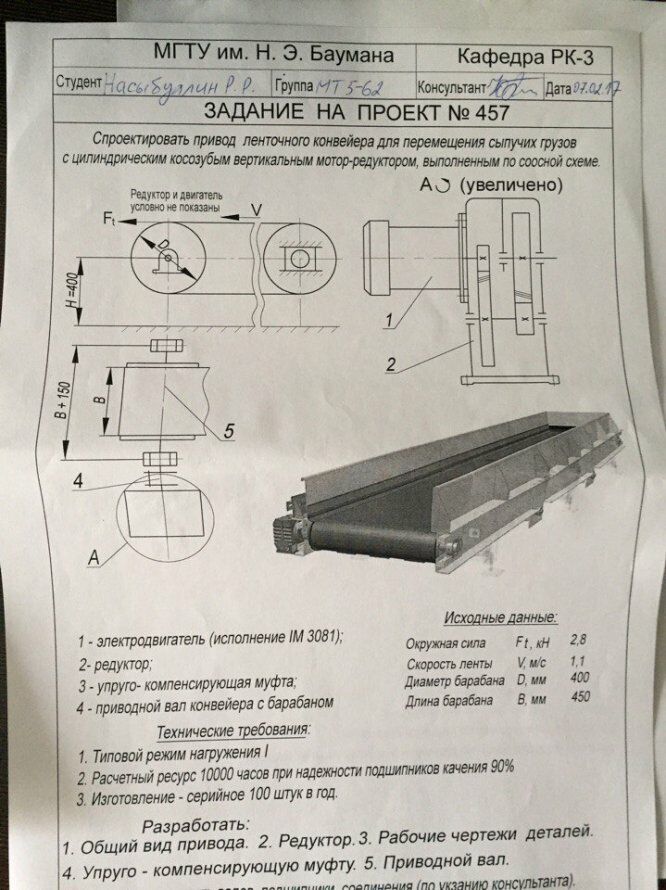 Курсовая работа ДМ: Привод ленточного транспортера вариант 457