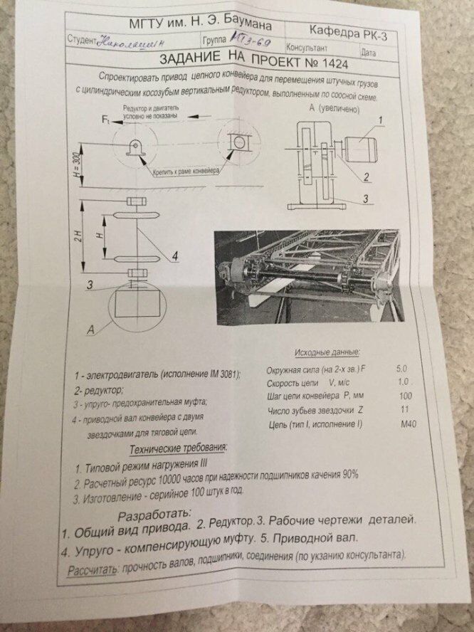 Для студентов МГТУ им. Н.Э.Баумана по предмету Детали машин (ДМ)Привод цепного конвеераПривод цепного конвеера