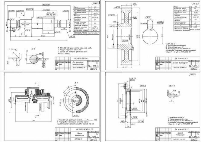 Лист 4 - Деталировка ( Вал-шестерня промежуточный; Колесо тихоходное; Муфта фрикционное; Крышка подшипника)