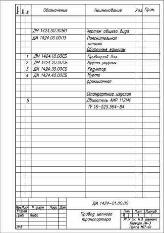 Курсовая работа ДМ: Привод цепного конвеера вариант 1424