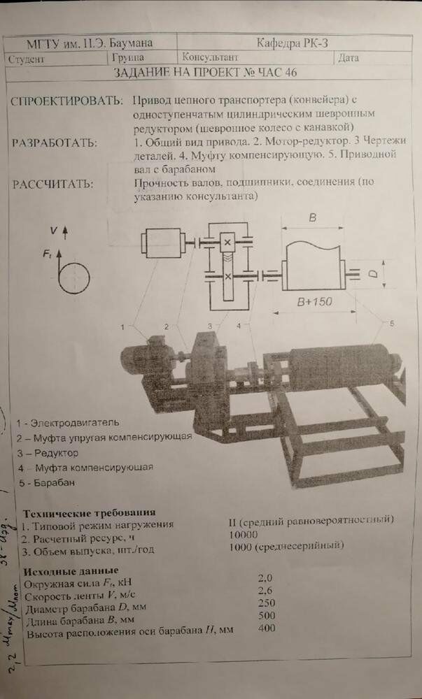 Курсовой проект по ДМ. привод ленточного транспортера с шевронным одноступенчатым редуктором