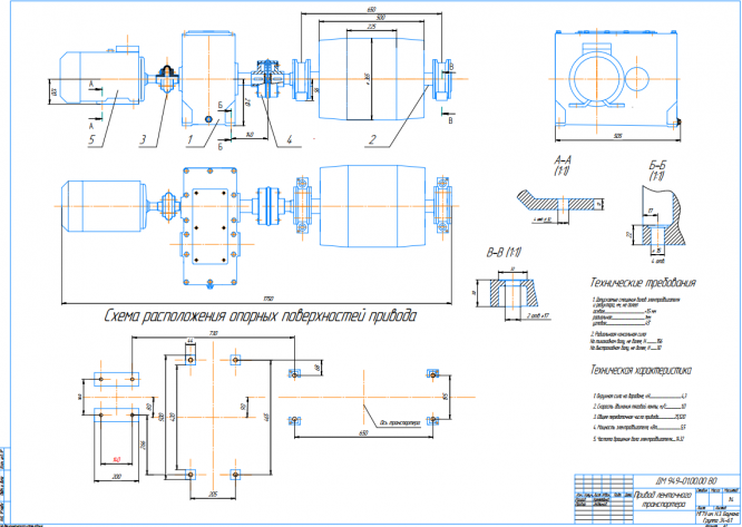 Для студентов МГТУ им. Н.Э.Баумана по предмету Детали машин (ДМ)Привод ленточного транспортера (редуктор цилиндрический двухступенчатый соосный)Привод ленточного транспортера (редуктор цилиндрический двухступенчатый соосный)