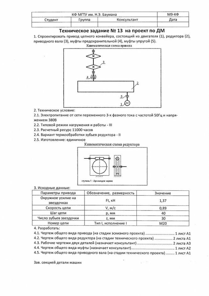 Для студентов МГТУ им. Н.Э.Баумана по предмету Детали машин (ДМ)Курсовой проект по деталям машинКурсовой проект по деталям машин