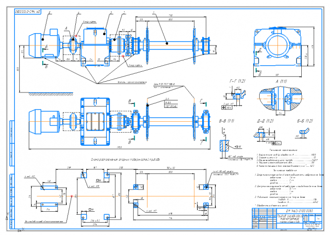 Для студентов МГТУ им. Н.Э.Баумана по предмету Детали машин (ДМ)Привод скребкового транспортера с двухступенчатым двухпоточным косозубым соосным редукторомПривод скребкового транспортера с двухступенчатым двухпоточным косозубым соосным редуктором