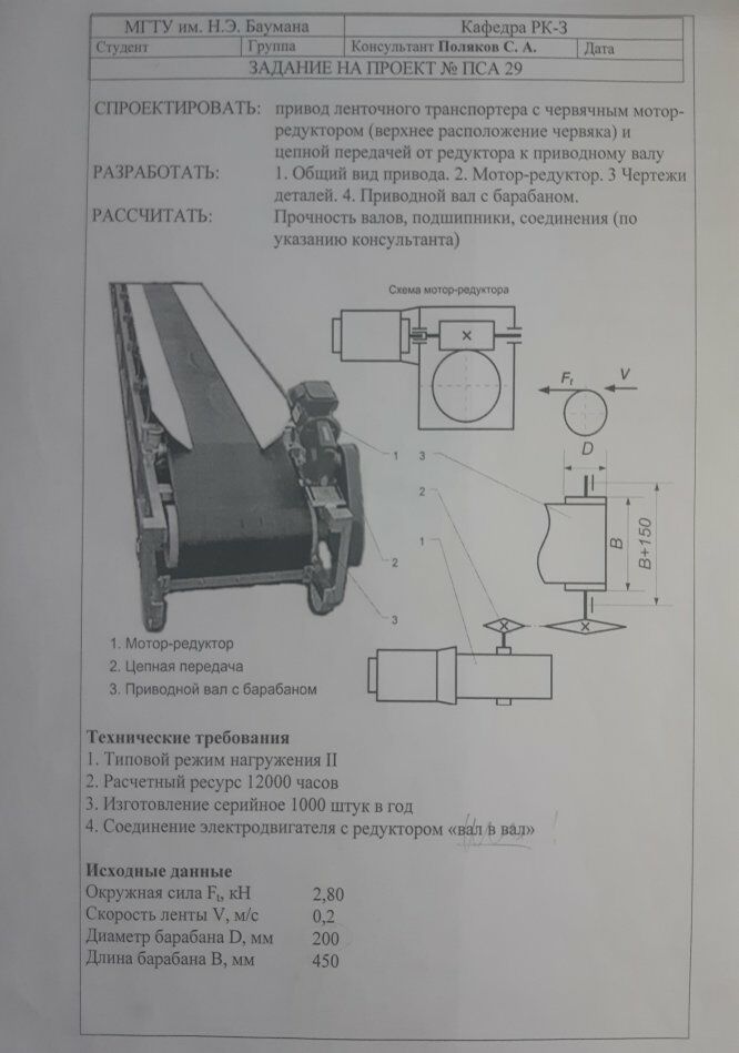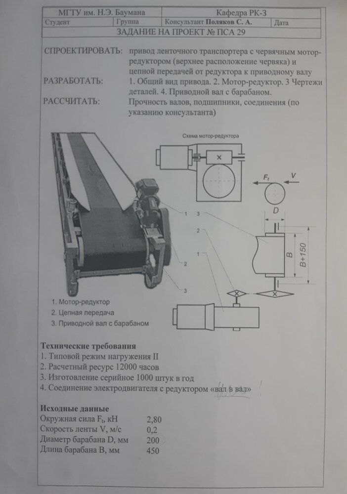 Для студентов МГТУ им. Н.Э.Баумана по предмету Детали машин (ДМ)Червячный мотор-редуктор с верхним расположением червяка и цепной передачейЧервячный мотор-редуктор с верхним расположением червяка и цепной передачей