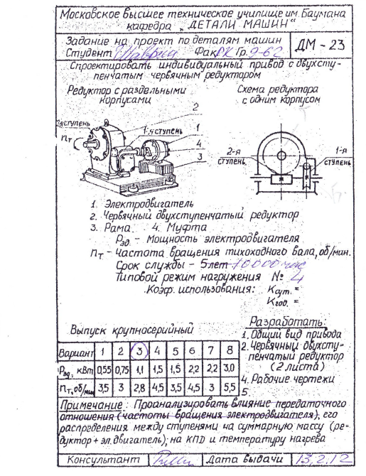 Курсовая работа ДМ: Привод с двухступенчатым редуктором ДМ23-03.0000 вариант 23