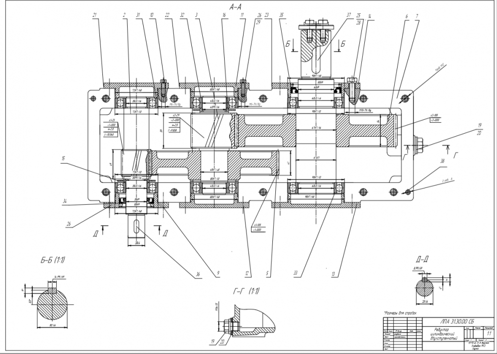 Для студентов МГТУ им. Н.Э.Баумана по предмету Детали машин (ДМ)двухступенчатый редуктор по развернутой схеме с косозубыми колесами, полный курсачдвухступенчатый редуктор по развернутой схеме с косозубыми колесами, полный курсач