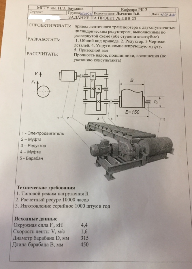 Для студентов МГТУ им. Н.Э.Баумана по предмету Детали машин (ДМ)Готовая Курсовая Работа. № ЛЛВ 23. Привод ленточного транспортера с двухступенчатым цилиндрическим редуктором, по развернутой схеме. Вариант 3Готовая Курсовая Работа. № ЛЛВ 23. Привод ленточного транспортера с двухступенчатым цилиндрическим редуктором, по развернутой схеме. Вариант 3