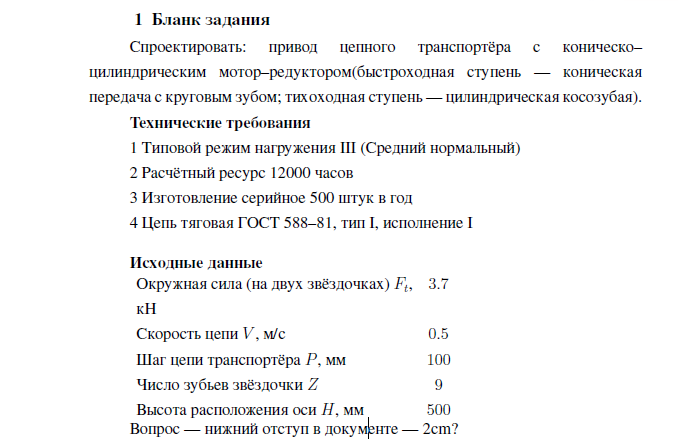 Главная » Учебные материалы » Детали машин (ДМ) » Курсовые работы » МГТУ им. Н.Э.Баумана » 6 семестр » Номер ДМ » Вариант 901 » Привод цепного транспортера с коническо-цилиндрическим мотор-редуктором (задание №901)