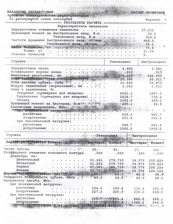 • сборочный чертеж редуктора (на стадии технического проекта);