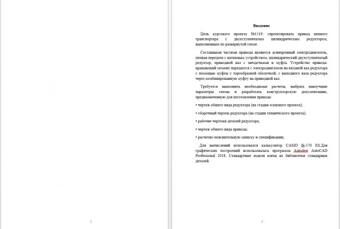 Цель курсового проекта №1519: спроектировать привод цепного транспортера с двухступенчатым цилиндрическим редуктором, выполненным по развернутой схеме.