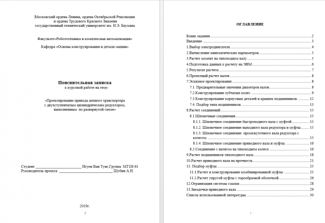 Для студентов МГТУ им. Н.Э.Баумана по предмету Детали машин (ДМ)ДМ №1519 - Проектирование привода цепного транспортера с двухступенчатым цилиндрическим редуктором, выполненным по развернутой схемДМ №1519 - Проектирование привода цепного транспортера с двухступенчатым цилиндрическим редуктором, выполненным по развернутой схем
