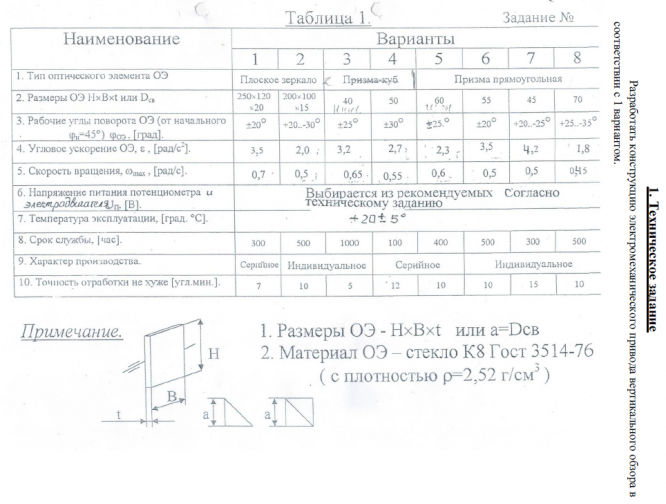 Курсовая работа: Электромеханический привод вертикального обзора (вариант №1)