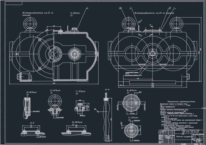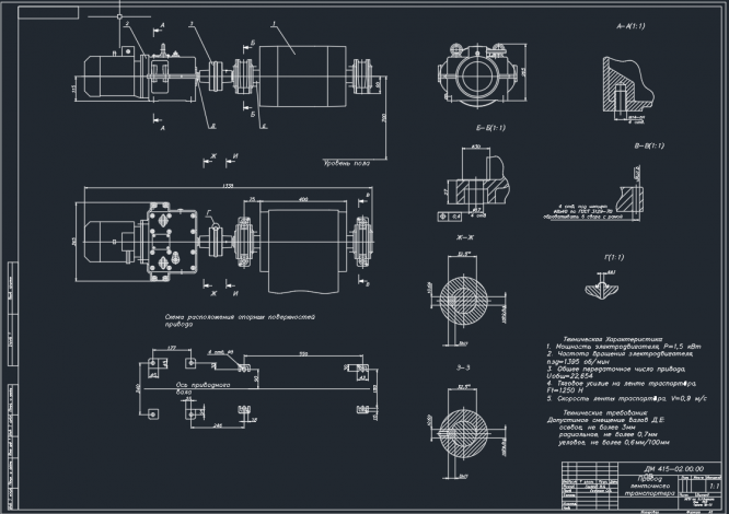 Курсовая работа ДМ: ДМ 415 - привод ленточного транспортера с двухступенчатым цилиндрическим соосным двухпоточным редуктором