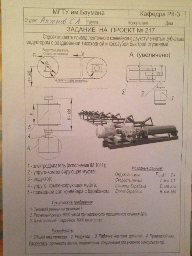 Главная » Учебные материалы » Детали машин (ДМ) » Курсовые работы » МГТУ им. Н.Э.Баумана » 6 семестр » Номер ДМ » Вариант 217 » ДМ №217- Привод ленточного конвейера с двухступенчатым зубчатым редуктором с раздвоеной тихоходной ступенью