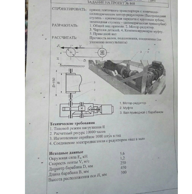 Для студентов МГТУ им. Н.Э.Баумана по предмету Детали машин (ДМ)Привод ленточного транспортера (задание №868)Привод ленточного транспортера (задание №868)