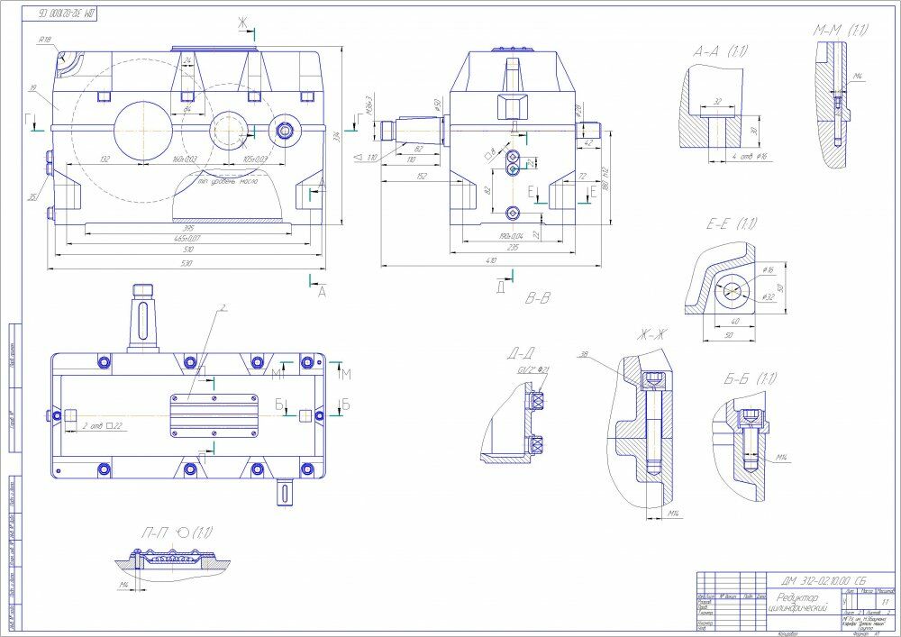 Для студентов МГТУ им. Н.Э.Баумана по предмету Детали машин (ДМ)ДМ 312 - привод цепного транспортера и редуктор двухступенчатый цилиндрический с шевронным колесамиДМ 312 - привод цепного транспортера и редуктор двухступенчатый цилиндрический с шевронным колесами