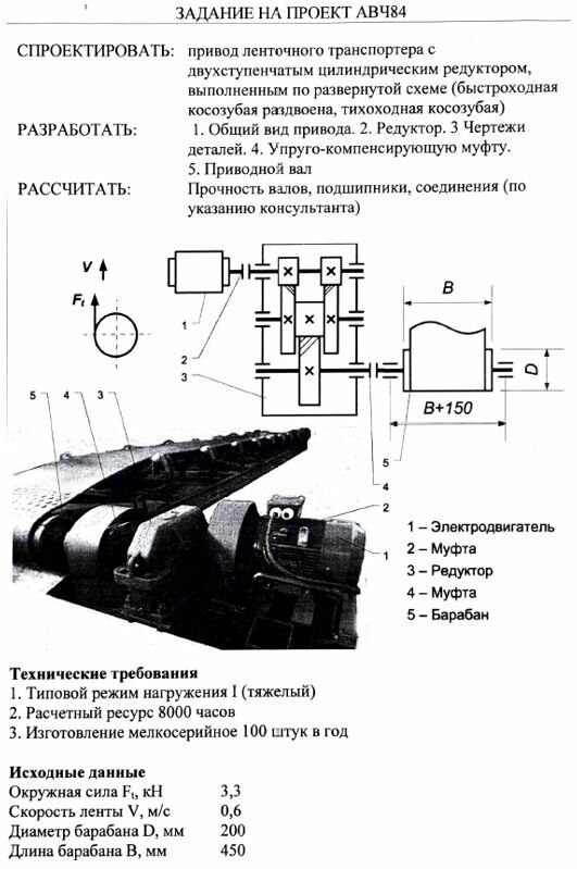Курсовая работа: АВЧ 84. Привод ленточного транспортера. вариант 84