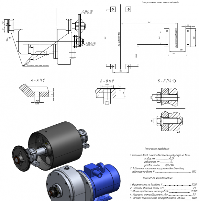 Для студентов МГТУ им. Н.Э.Баумана по предмету Детали машин (ДМ)Привод ленточного транспортера (задание №75)Привод ленточного транспортера (задание №75)