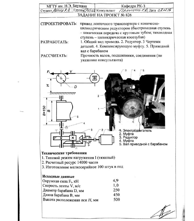 Для студентов МГТУ им. Н.Э.Баумана по предмету Детали машин (ДМ)Привод ленточного транспортера (задание №826)Привод ленточного транспортера (задание №826)