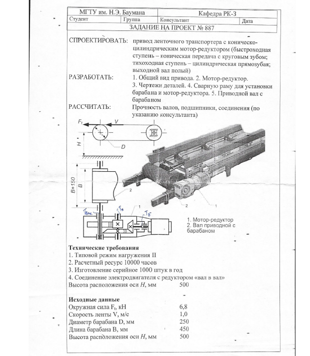 Для студентов МГТУ им. Н.Э.Баумана по предмету Детали машин (ДМ)Привод ленточного транспортера (задание №887)Привод ленточного транспортера (задание №887)