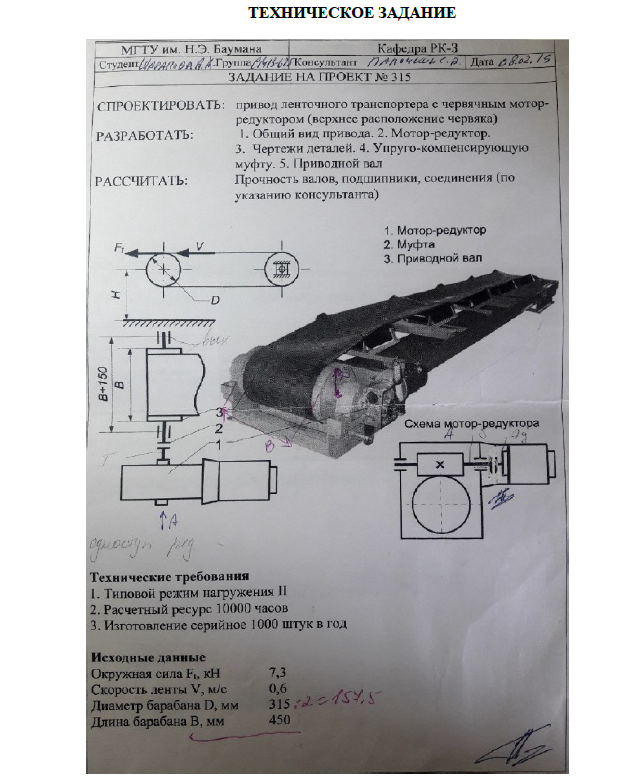Для студентов МГТУ им. Н.Э.Баумана по предмету Детали машин (ДМ)Привод ленточного транспортера ДМ 315.00.00 ПЗПривод ленточного транспортера ДМ 315.00.00 ПЗ
