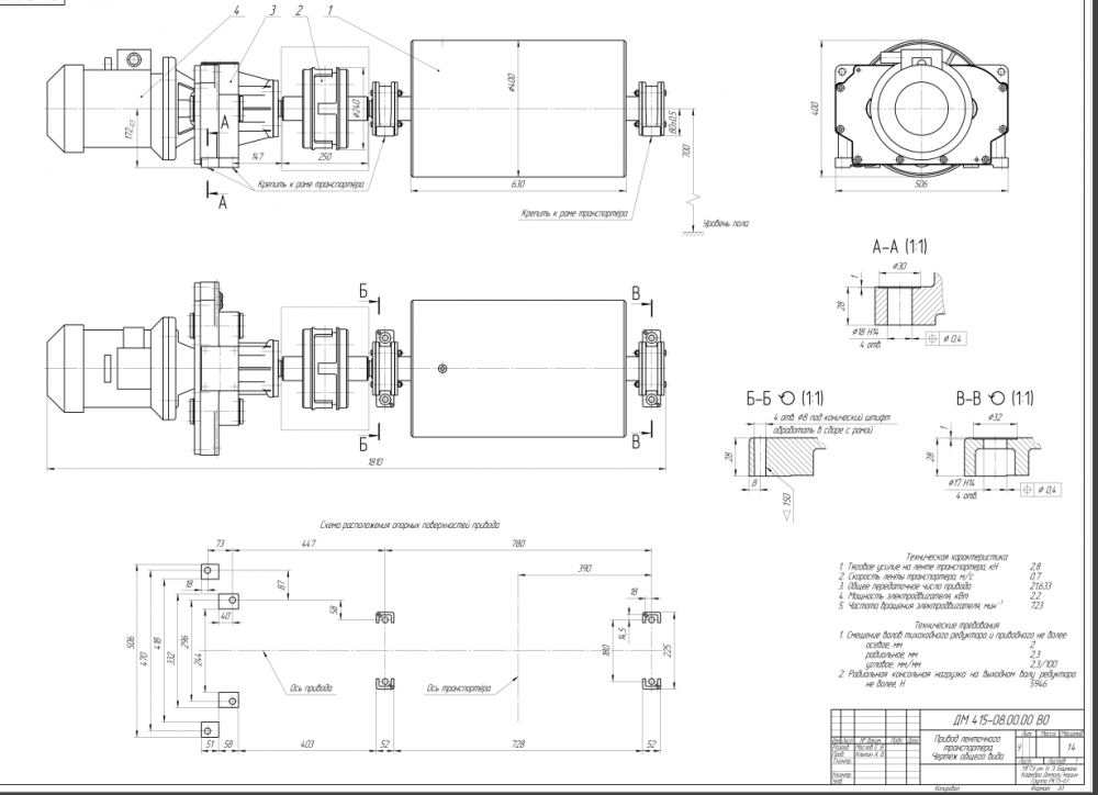 Лист 1 - Привод ленточного транспортёра. Чертёж общего вида (ф. А1)