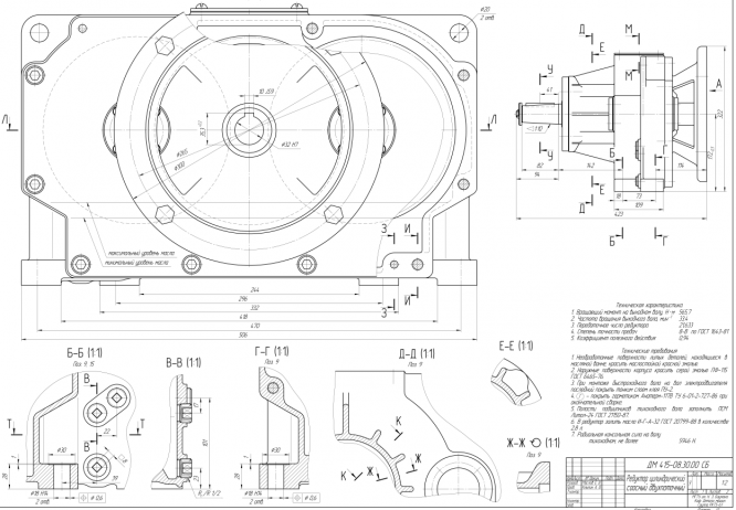 Редуктор цилиндрический соосный двухпоточный - 3 листа (ф. А4) (младшая)