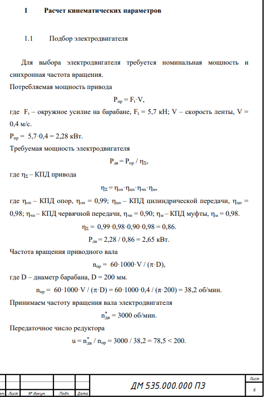 ПРИВОД ЛЕНТОЧНОГО ТРАНСПОРТЕРА Пояснительная записка ДМ 535