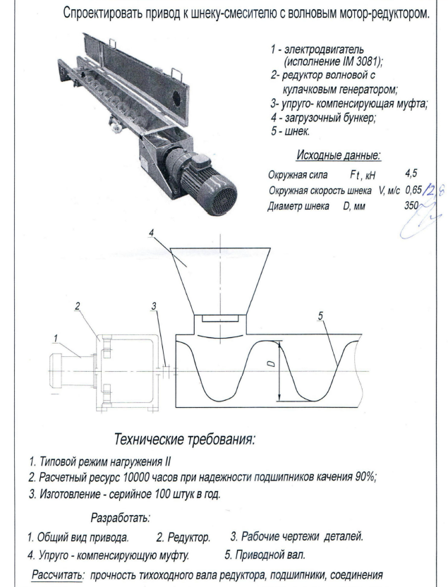 Курсовая работа ДМ: Привод к шнеку-смесителю ДМ 765.00.00 ПЗ вариант 765