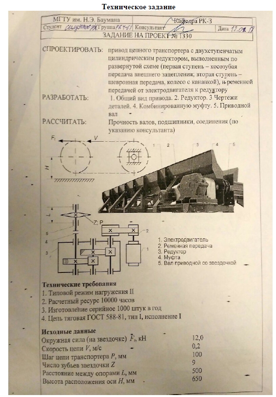Для студентов МГТУ им. Н.Э.Баумана по предмету Детали машин (ДМ)Привод цепного транспортера ДМ 1330-02.00.00 ПЗПривод цепного транспортера ДМ 1330-02.00.00 ПЗ