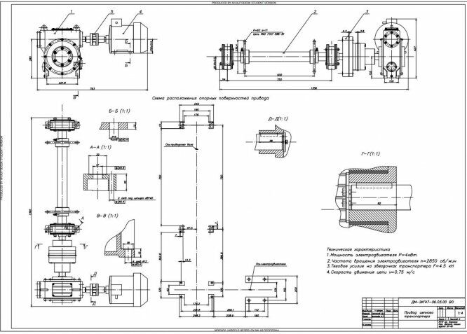 Для студентов МГТУ им. Н.Э.Баумана по предмету Детали машин (ДМ)ДМ ЭКГ 47 - привод цепного транспортера и червячный редукторДМ ЭКГ 47 - привод цепного транспортера и червячный редуктор